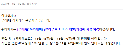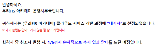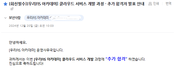 잊혀 갈 때쯤 우리 FISA에서 추가 합격 메일이 왔다!